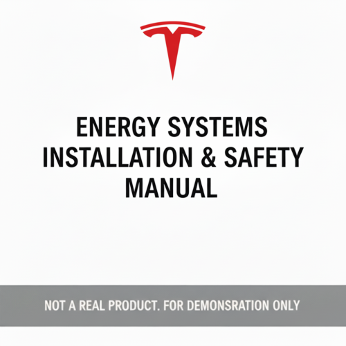 The Tesla Energy Systems Installation & Safety Manual provides detailed technical guidance for the installation, configuration, and maintenance of Tesla’s solar and energy storage products. It includes procedures for mounting hardware, electrical wiring, system commissioning, and troubleshooting, along with essential safety requirements for technicians and installers.